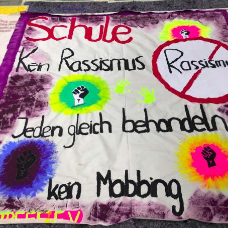 Wir fordern: Schule ohne Rassismus. Lehrende Personen sollten sich mit ihren Vorurteilen auseinandersetzen und jede Schüler*in gleich behandeln!
